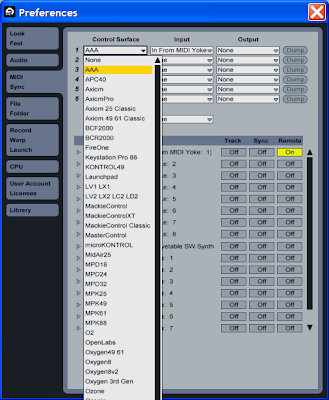 Now, if we open up Live and select AAA from the MIDI preferences pull-down, Live will compile our .PY files, create corresponding .PYC files in our script folder, and run the scripts.