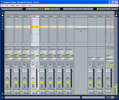 The ProjectX script is made up of two sets of keyboard mappings, which can be used together or independently. Part X is a vertical session component (“red box”), and Part Y is a horizontal session component (“yellow box”). We’ll keep it relatively simple (it is intended to be used with a standard MIDI keyboard, after all), but we will demonstrate the use of several of the Framework classes and methods along the way – primarily the Session, Mixer and Transport components.